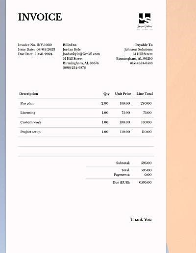 With Invoice Candy, crafting these detailed estimates becomes a breeze. We’ve got free templates that you can customize and download in PDF, Word, or Excel, so you spend less time on paperwork and more time painting.