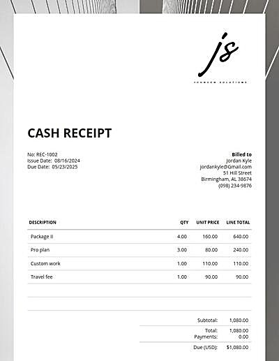 An auto repair receipt is sent after a client pays the invoice. Much like with an auto repair invoice, you should include all the essential details of the repair work, costs, and payment information. Using an online receipt generator like Invoice Candy can help you generate receipts faster.